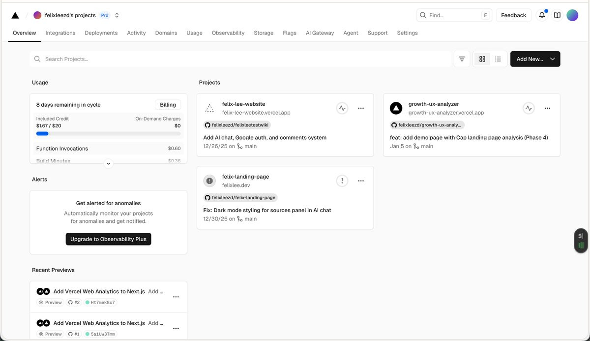 Vercel gives you a live URL like https://growth-ux-analyzer.vercel.app/. Your site is now on the internet. Share it with anyone.